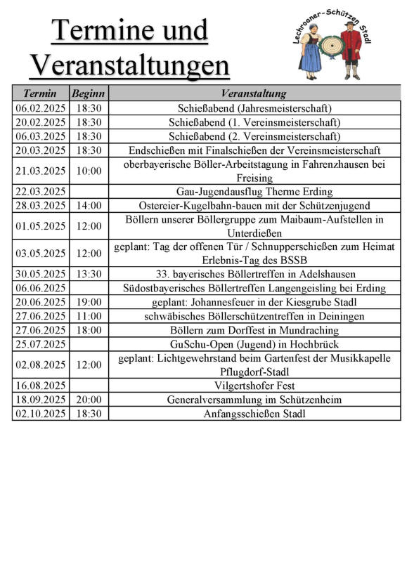 Wir versuchen die Termine stets aktuell zu halten,