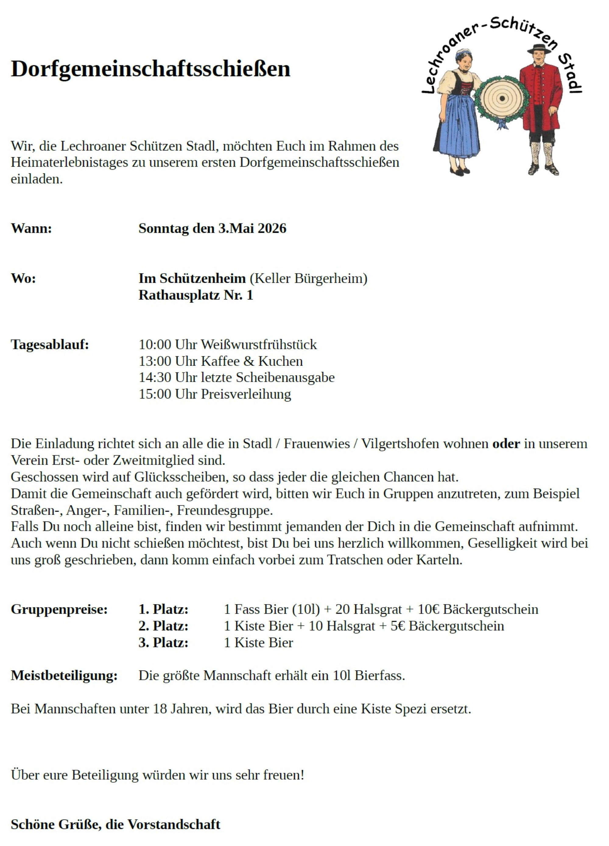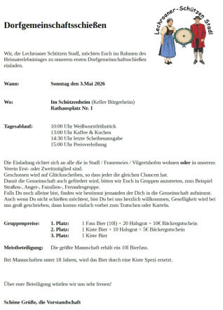 03.05.2026 >>> Heimaterlebnistag des BSSB > geplant: Tag der offenen Tür mit Straßenvergleichswettkampf