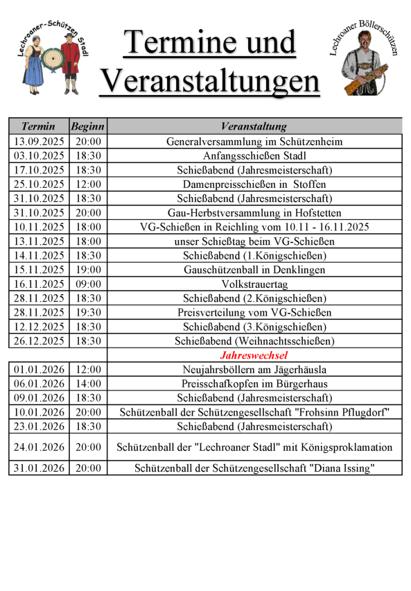 Wir versuchen die Termine stets aktuell zu halten,